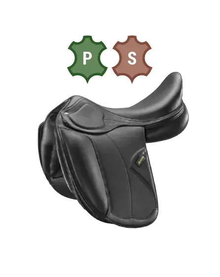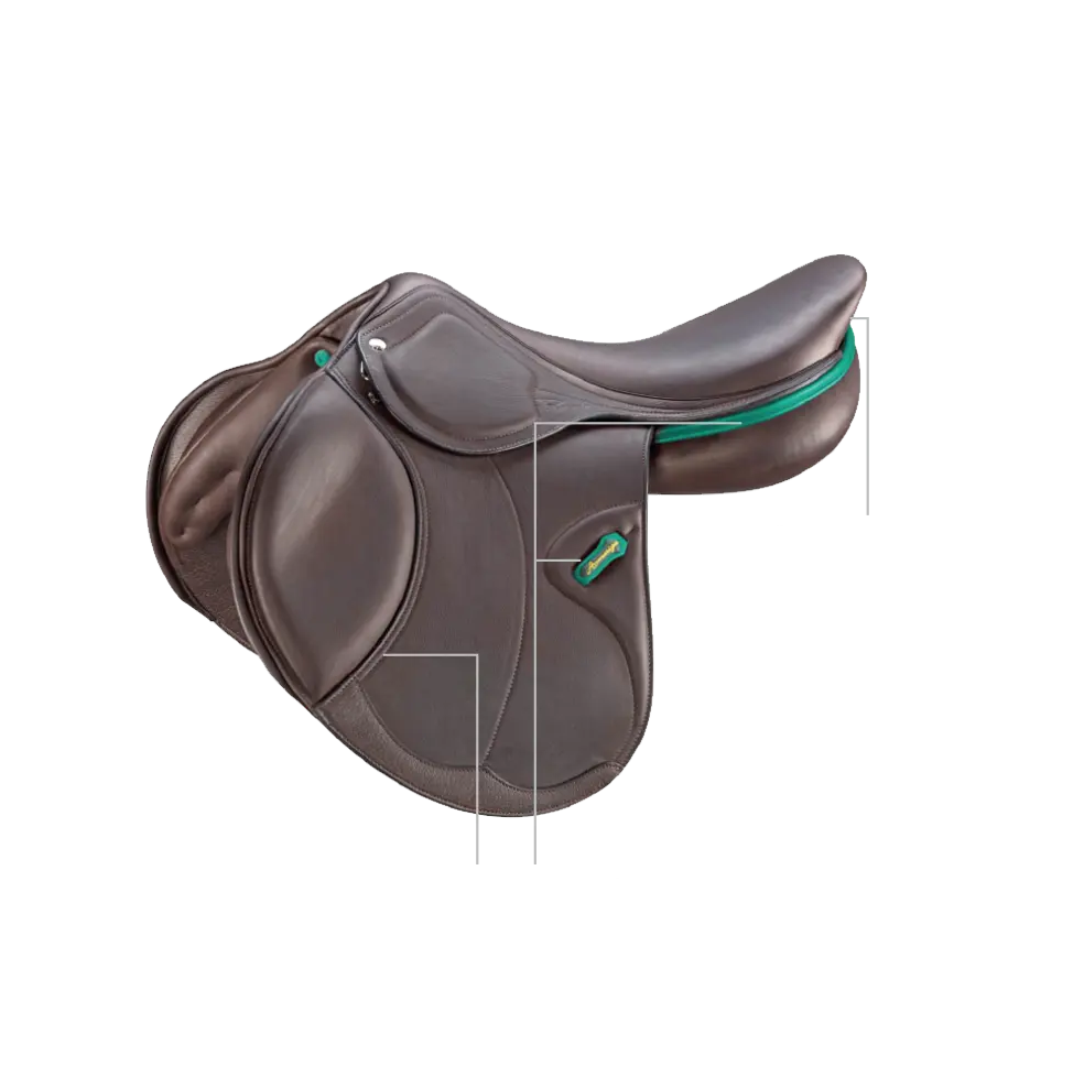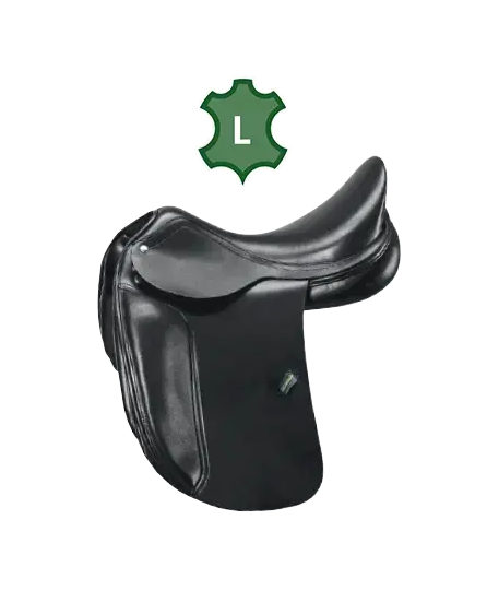 Dressage saddle Amerigo Cortina Siena. Also available in a single-sided version. The saddle is shown in the Pinerolo leather version.